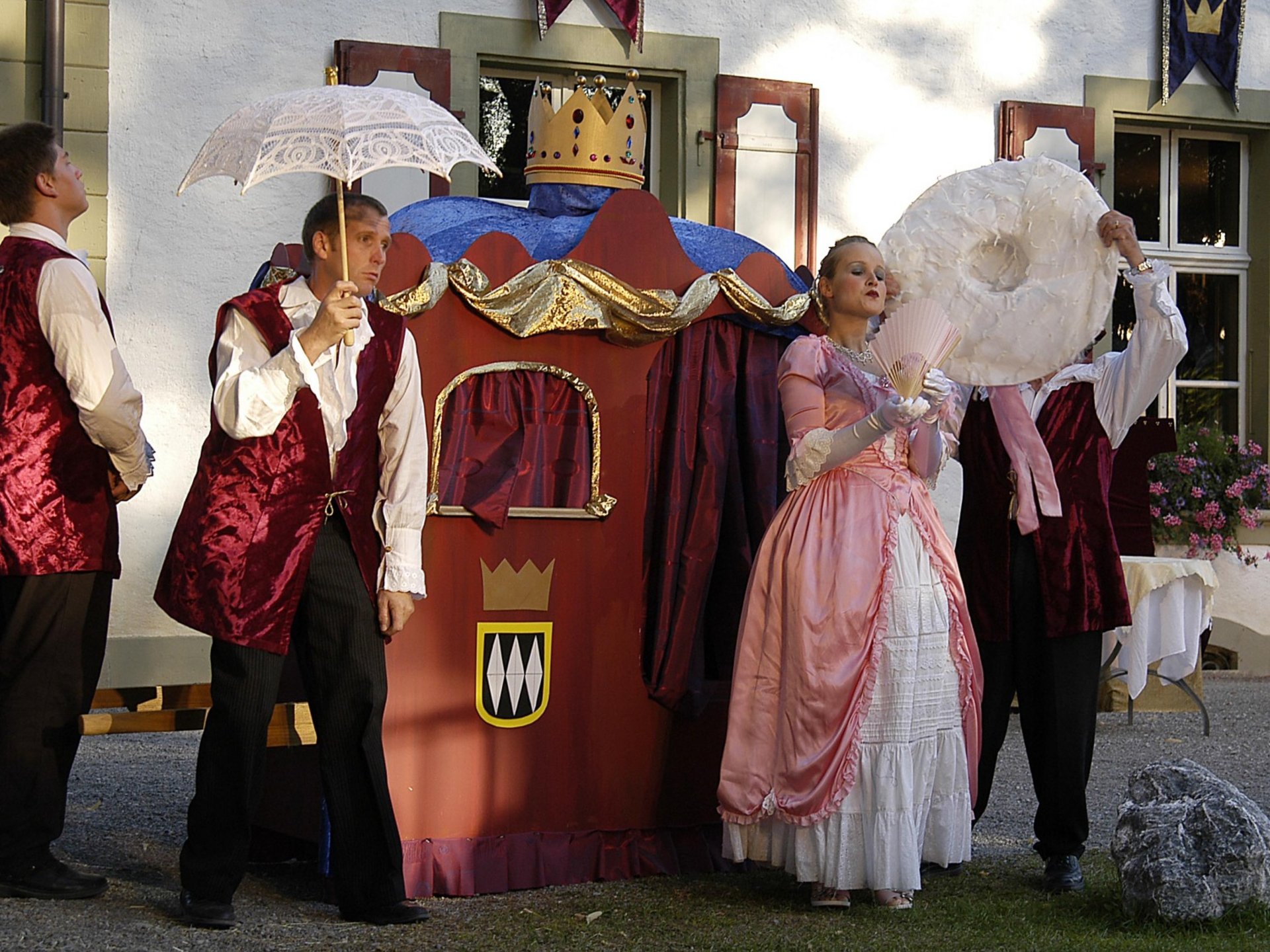 Im lieblichen Garten des Schlösschens Bellerive sitzt die eingebildete Prinzessin Ludovica auf einem Berg von Spielsachen. Und obwohl ihr jeder Wunsch von den Augen abgelesen wird und sie die Dienerschaft mit ausgefallenen Ideen auf Trab hält – sie langweilt sich. Dass ihr Vater aber plötzlich Prinzen, Könige und Edelmänner einlädt, die um ihre Hand anhalten wollen, geht ihr zu weit: Heiraten will das verwöhnte Königskind auf keinen Fall, und schon gar nicht irgendeinen „Hampelmann“...